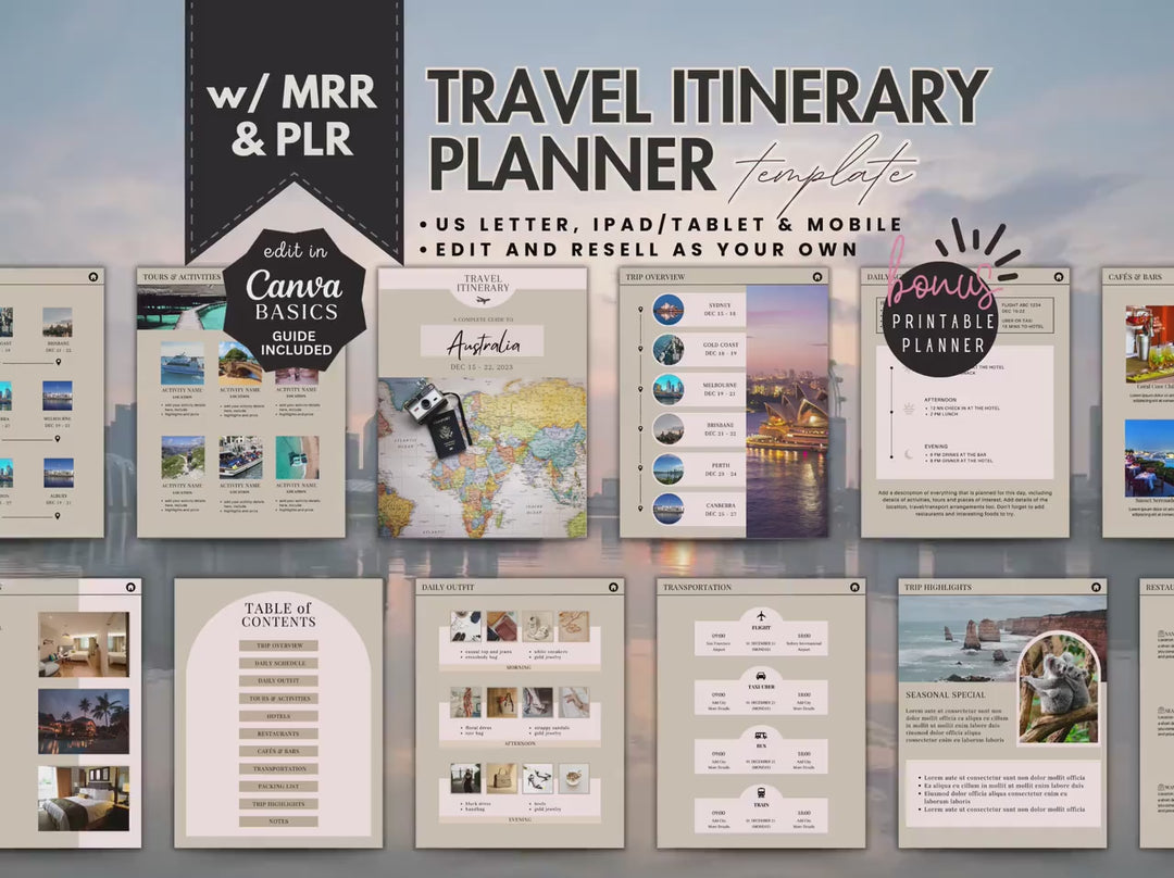 100% editable – Easily customize all included products to your needs, from travel itineraries to planners, guides, and bonus templates.